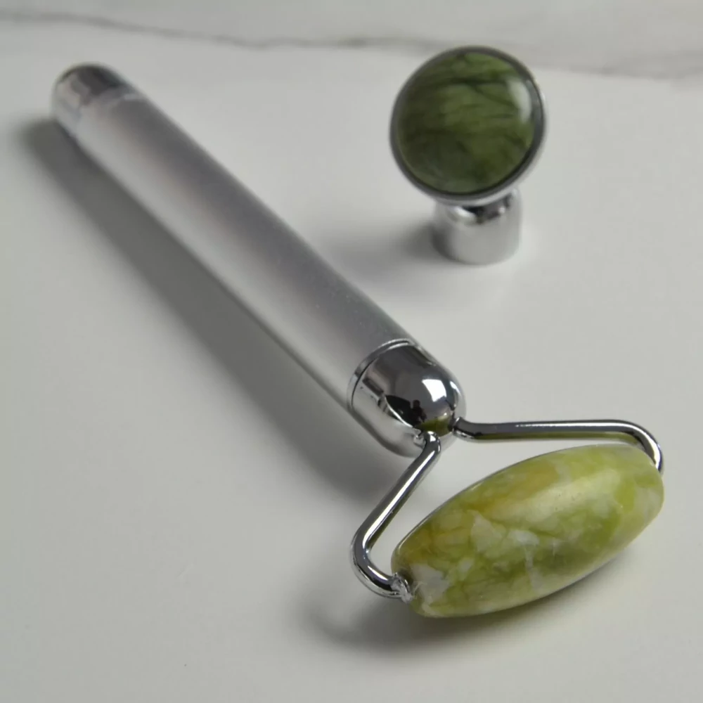 Élvezd az arcápolás luxusát az aventurin kő erejével! Ez a vibrációs arcroller nemcsak látványos szépségápolási eszköz, hanem igazi wellness élményt is nyújt otthonodban. Az aventurin kő frissítő, nyugtató hatása kombinálva a finom vibrációval segít kisimítani az arcot, csökkenteni a feszültséget és támogatni a bőr megújulását.