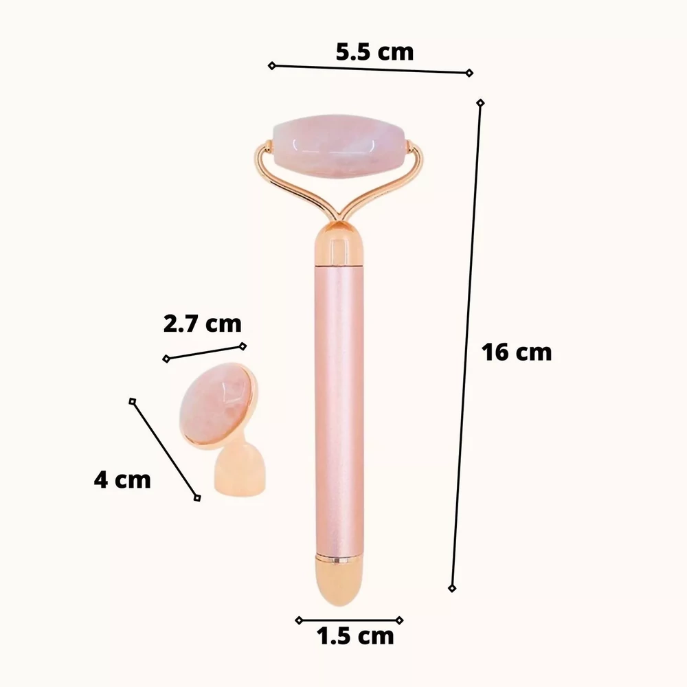 Fedezd fel a luxus arcápolás élményét ezzel a különleges rózsakvarc arcrollerrel! A természetes rózsakvarc kő és a vibrációs masszázs kombinációja segít ellazítani az arc izmait, fokozza a vérkeringést, és támogatja a bőr feszességének megőrzését.
